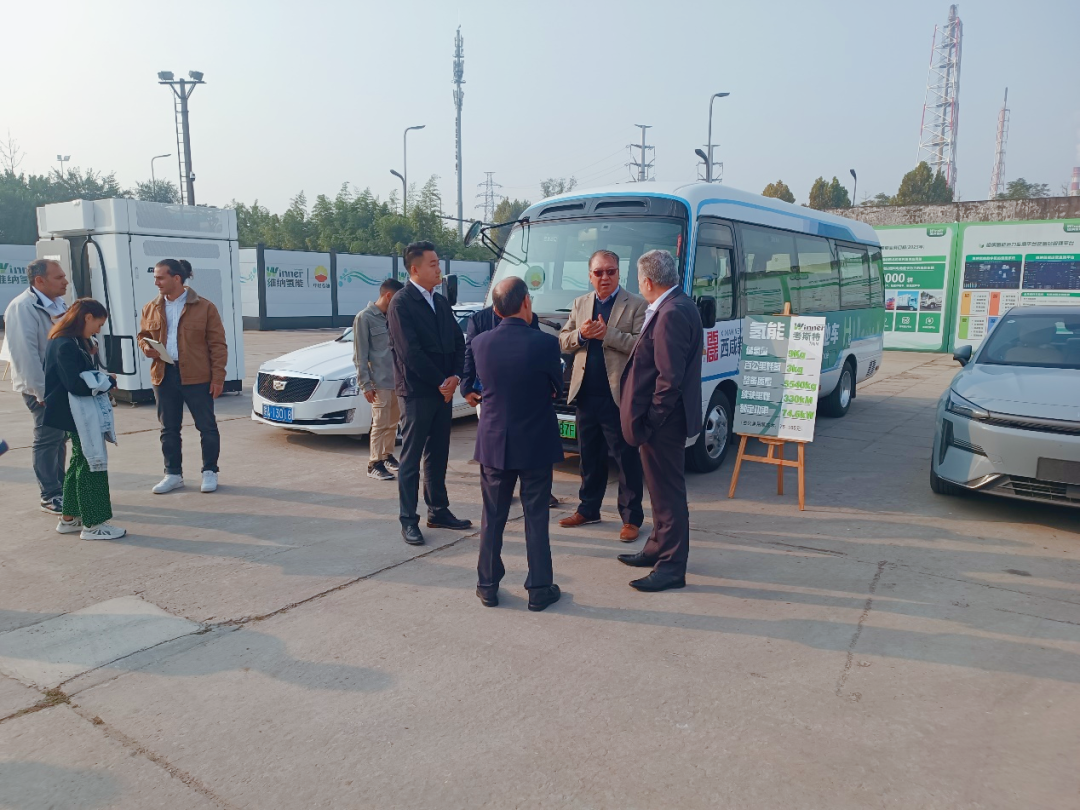 在加氫站現(xiàn)場(chǎng),工作人員向塞浦路斯外賓介紹了加氫站的建設(shè)運(yùn)營(yíng)情況,分享了維納氫能在氫能應(yīng)用場(chǎng)景做出的探索和經(jīng)驗(yàn),并就氫能在塞浦路斯的發(fā)展情況做了交流。