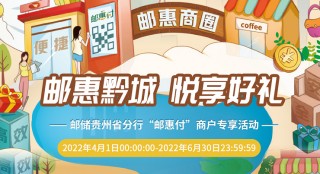 郵惠黔城 悅享好禮 您有一份來自郵儲銀行貴州省分行的福利…… Hi~~~ 郵儲銀行貴州省“郵惠付”收單商戶 你們的專屬福利來啦! 每月50筆以上商戶可按排名 獲取激……
